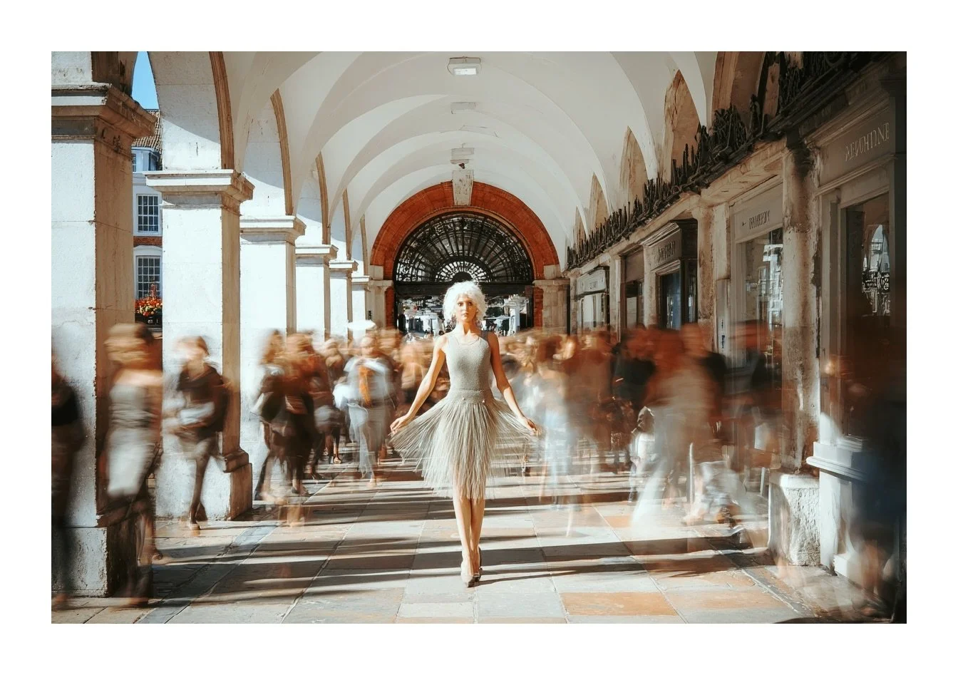 A reminder that elegance can appear anywhere — even between noodle stalls, graffiti walls, Thames drizzle, and curious pensioners.
